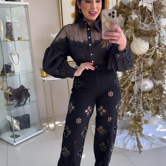 Black Pearls Flower Jeans