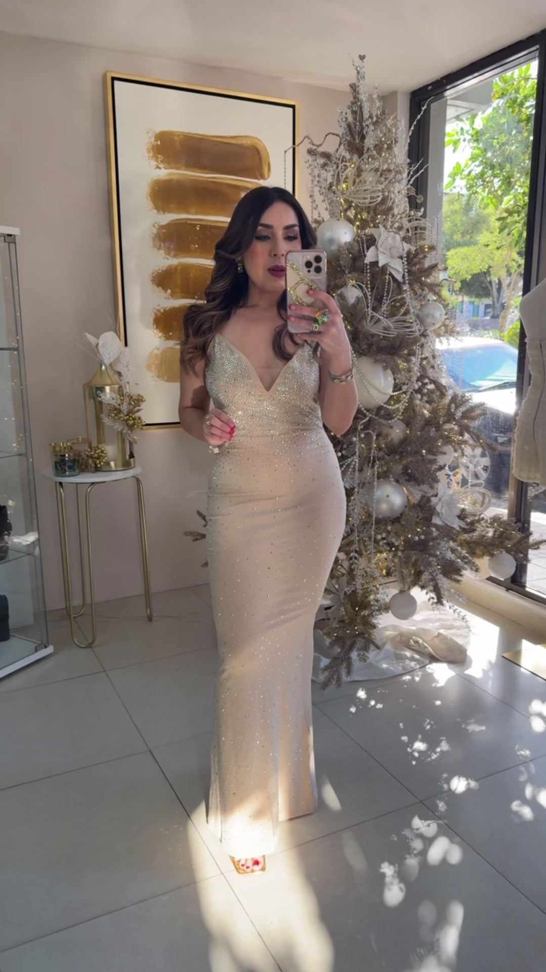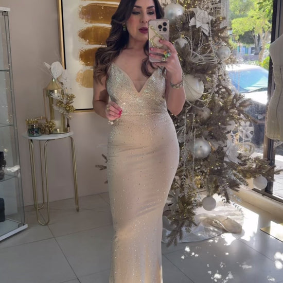 Cream Sexy Dress. Model wearing Small. Spandex