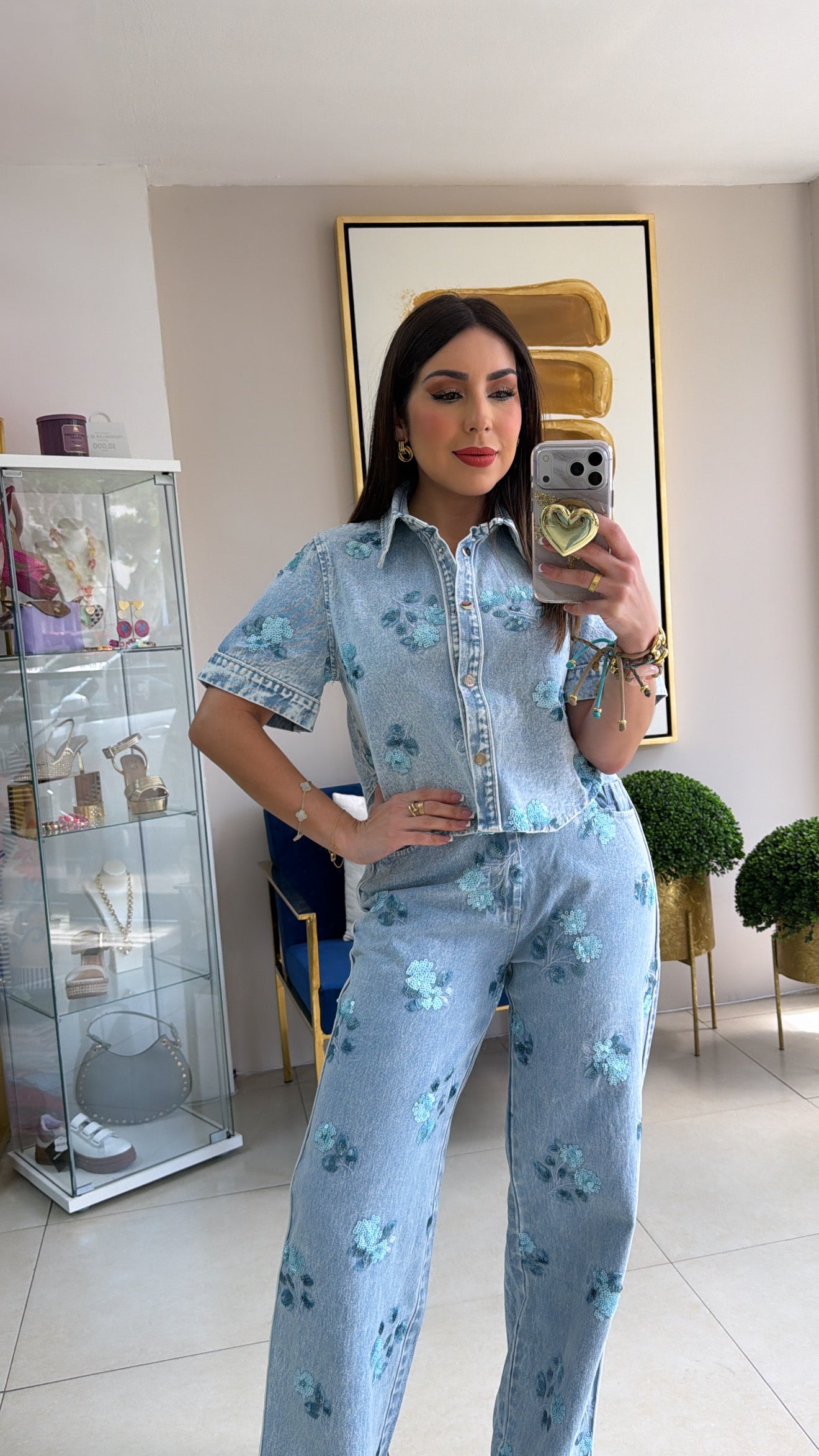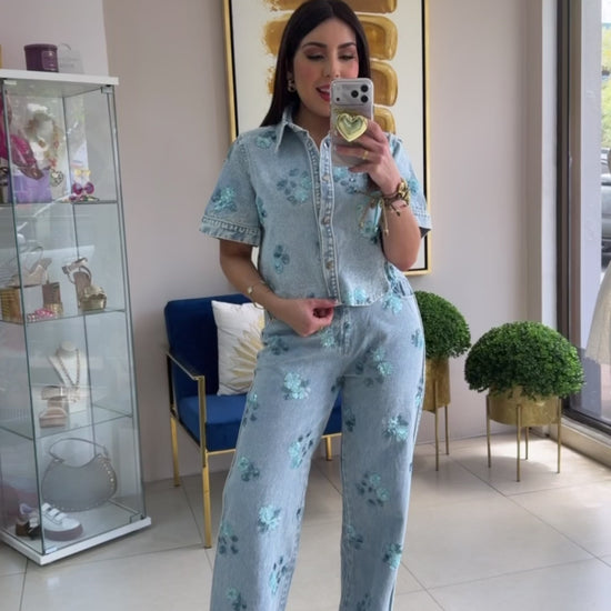 Floral Embroidery Denim Set