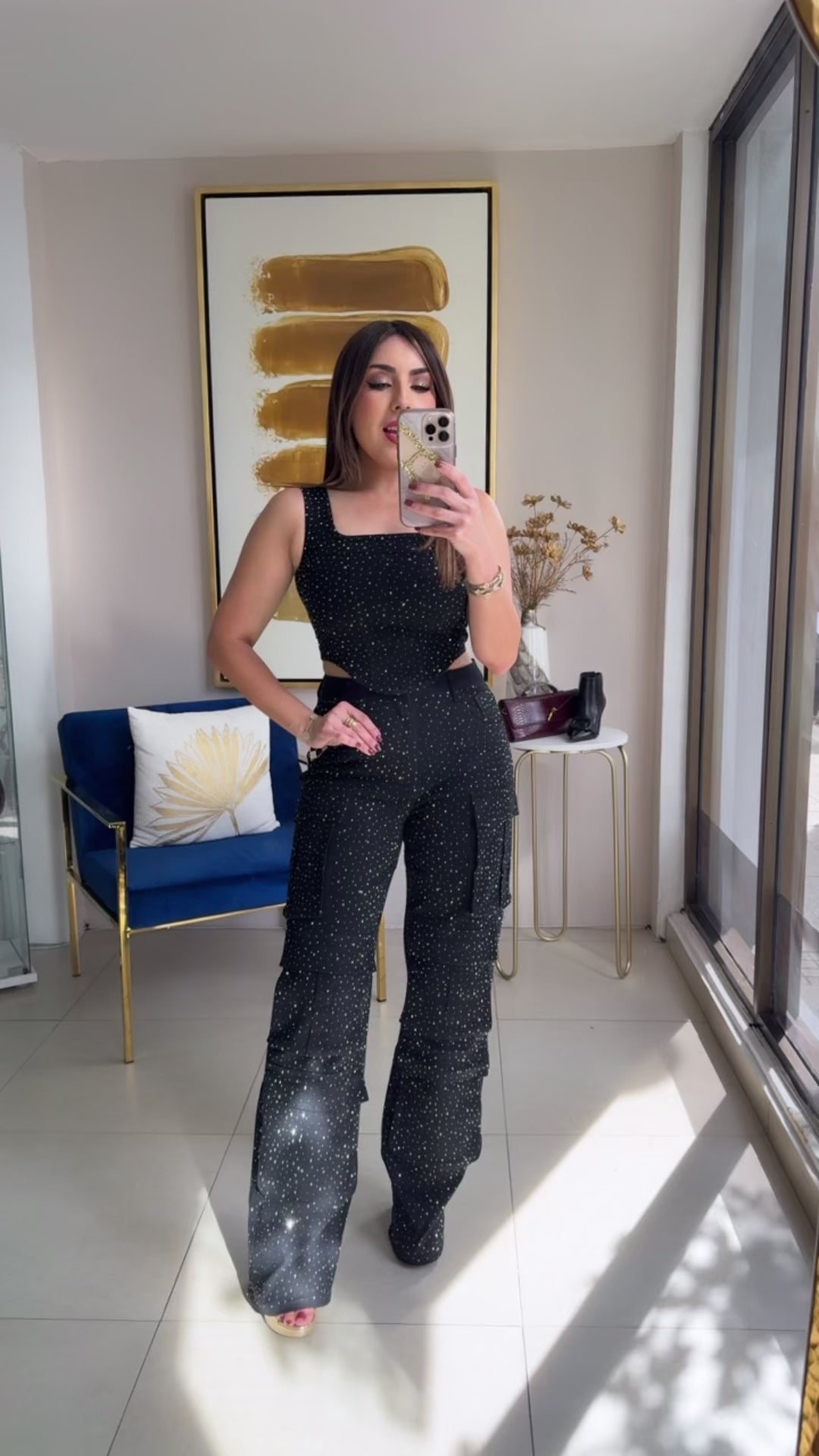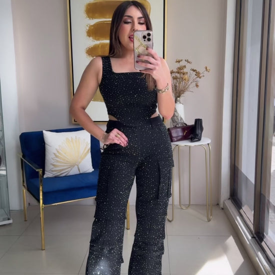 Glitter Cargo Set. Model wearing Small.