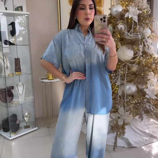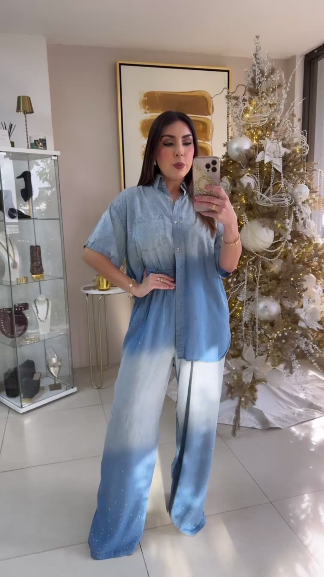 Glitter Denim Pant and Top Set. Model wearing Small.