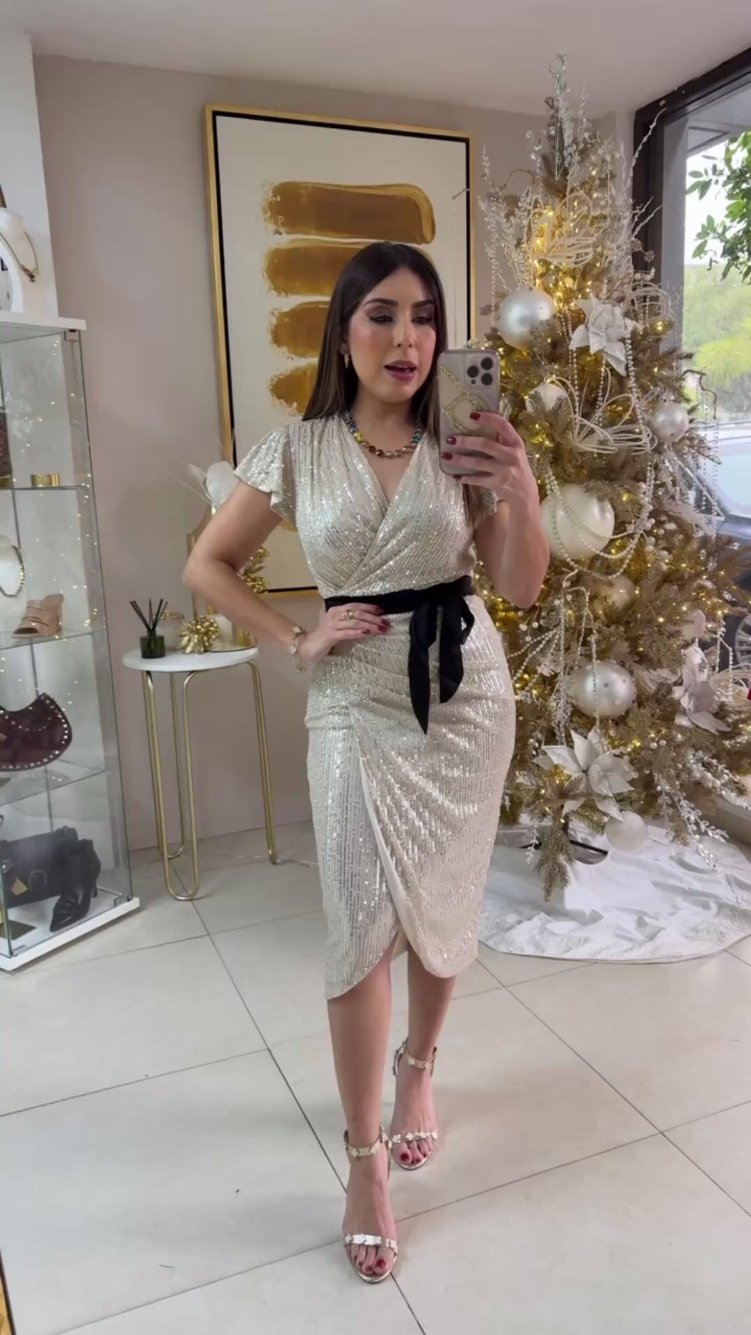 Ivory Sequins Short Dress. Side zipper. Model wearing Small.