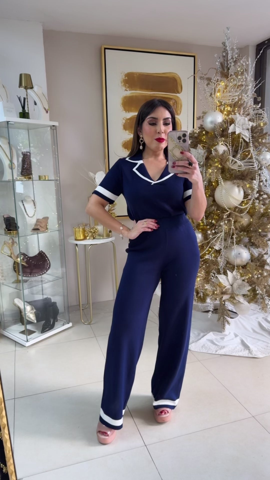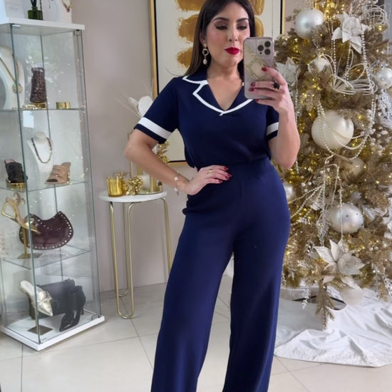 Navy Travel Set. Model wearing Small/Medium.
