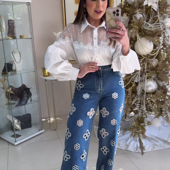 Pearls Flower Jeans