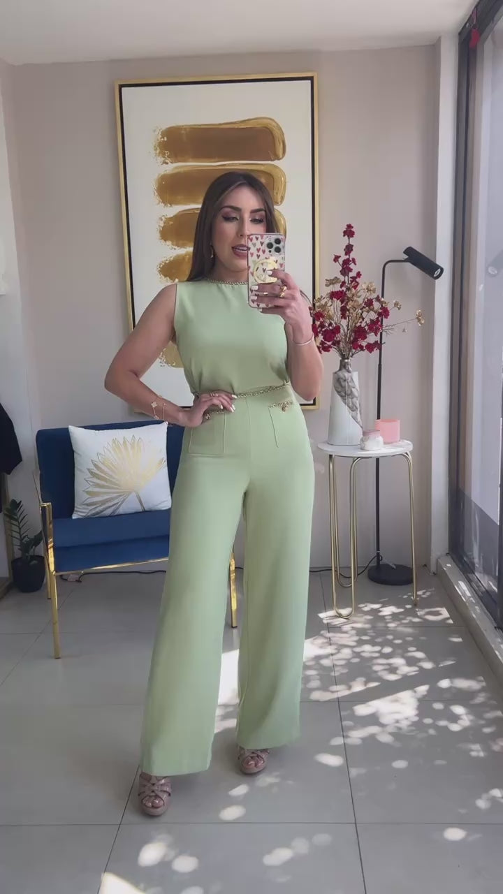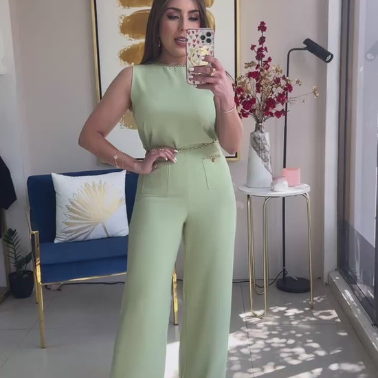 Mint Chain Pants, details on Pockets. Side Zipper.
