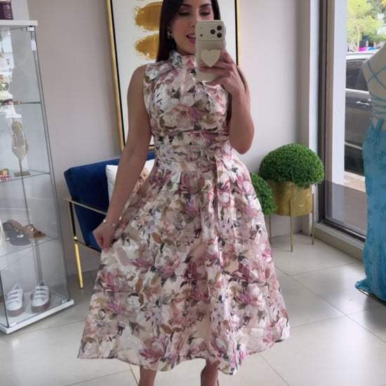 Romantic Vintage Dress. Back Zipper. Belt included.