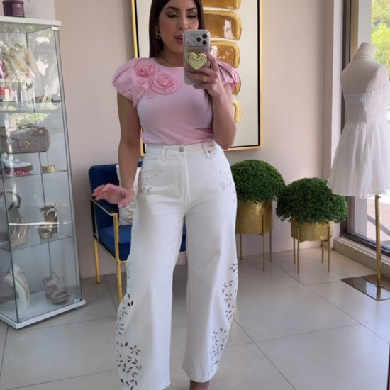 White Barrel Embroidered Jean