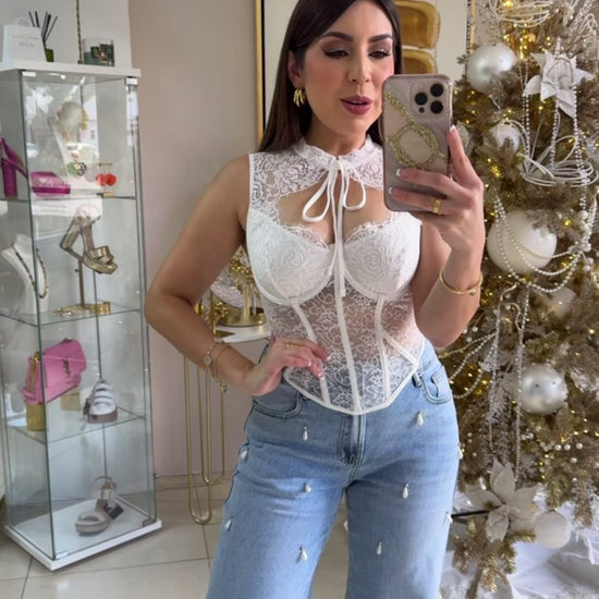White Corset Lace Top