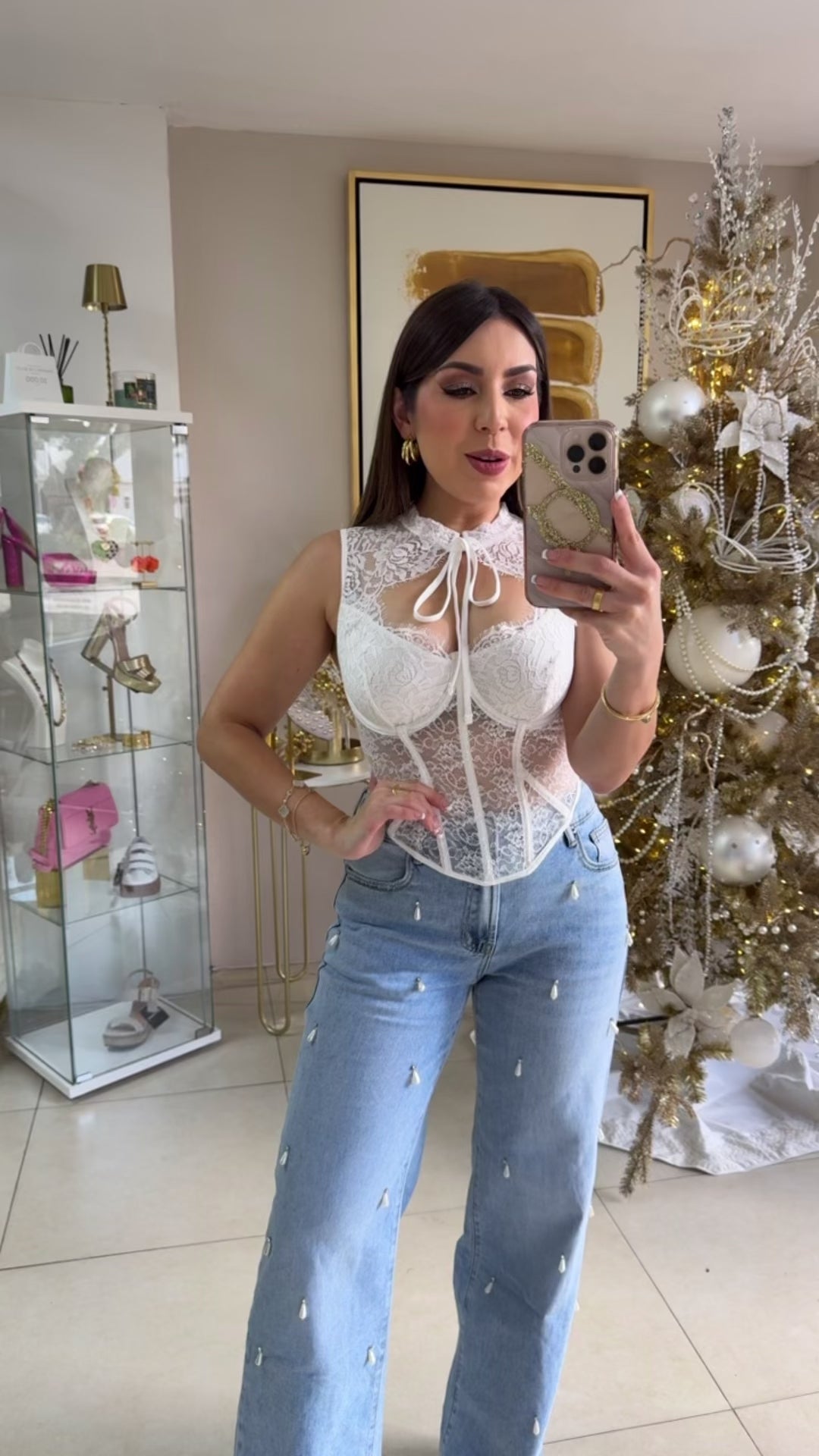 White Corset Lace Top. Model wearing Small/Medium.